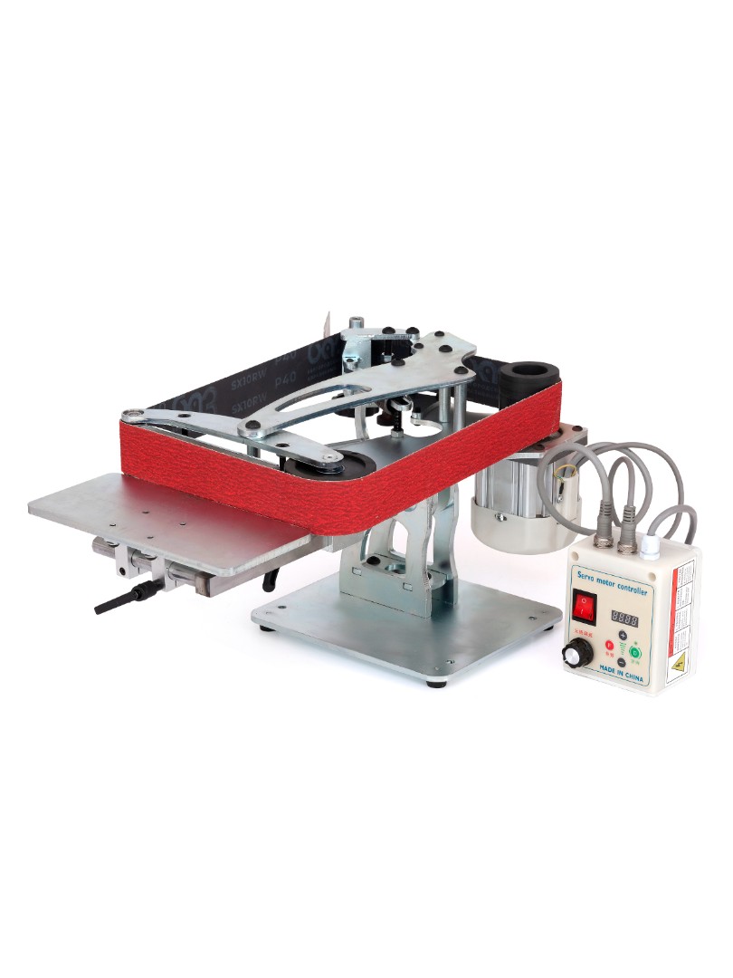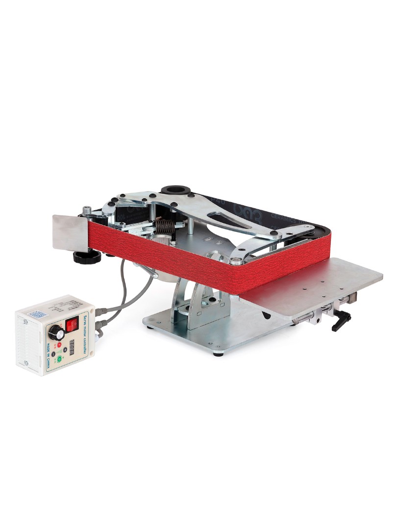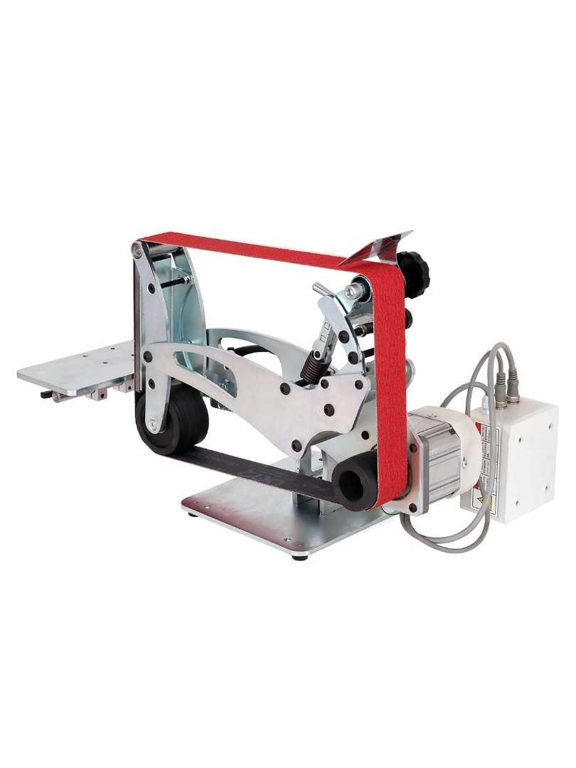Мощь, компактность, тишина! Постоянное усилие на ленте серводвигателя мощностью 750 Вт со шкивом 70мм равно максимальному усилию на ленте асинхронного двигателя мощностью 1500 Вт со шкивом 105мм, при этом серводвигатель примерно в 3 раза меньше и легче. Это позволило нашим инженерам максимальную функциональность гриндера с поворотной рамой разместить в минимальных габаритах.