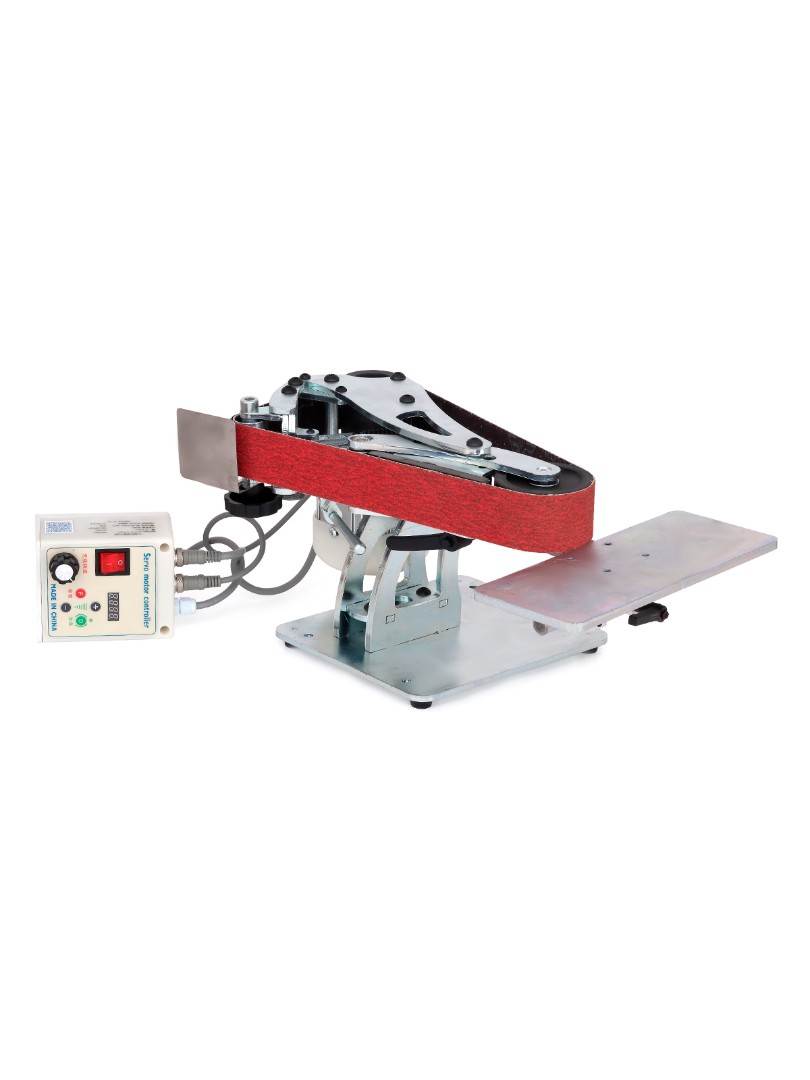 Мощь, компактность, тишина! Постоянное усилие на ленте серводвигателя мощностью 750 Вт со шкивом 70мм равно максимальному усилию на ленте асинхронного двигателя мощностью 1500 Вт со шкивом 105мм, при этом серводвигатель примерно в 3 раза меньше и легче. Это позволило нашим инженерам максимальную функциональность гриндера с поворотной рамой разместить в минимальных габаритах.