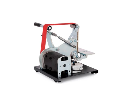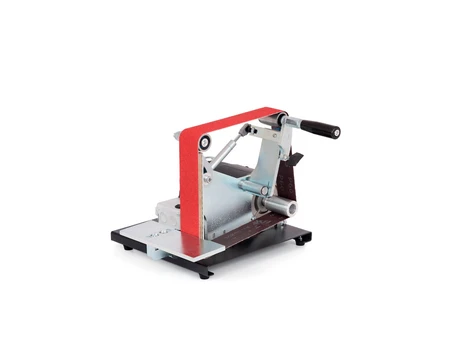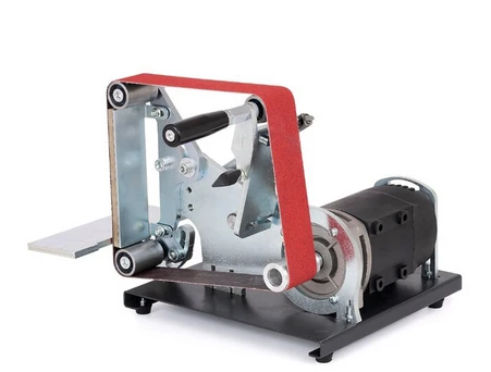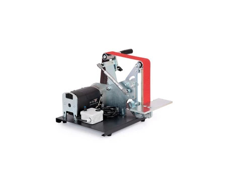 На станке используется лента 915х50мм, двигатель имеет мощность 1.5 кВт и модуль регулировки оборотов без потери мощности, что позволяет расширить функционал станка и использовать его для обработки мягких и вязких материалов: таких как пластик, дерево, медь и алюминий. Регулятор оборотов позволяет варьировать скорость движения шлифовальной ленты в диапазоне от 2-30 м/с.