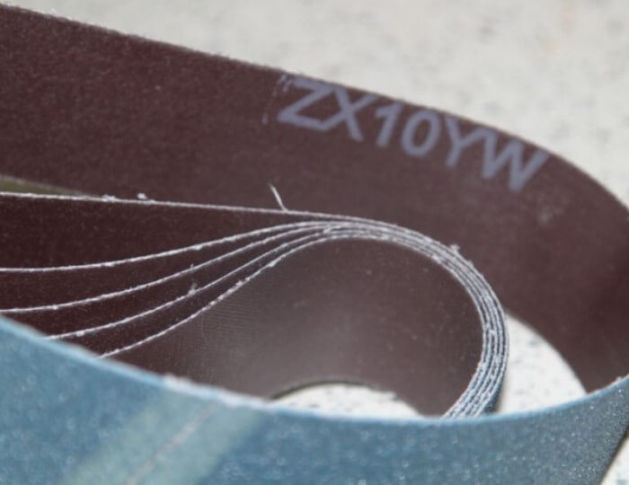 Материал абразивных лент — электрокорунд циркониевый на тканевой основе, водостойкий. Предназначены для обработки металлов и твердых пород древесины. Способ склейки шлифовальной ленты, под углом 24 градуса встык на синтетической волокнонаправленной подложке.